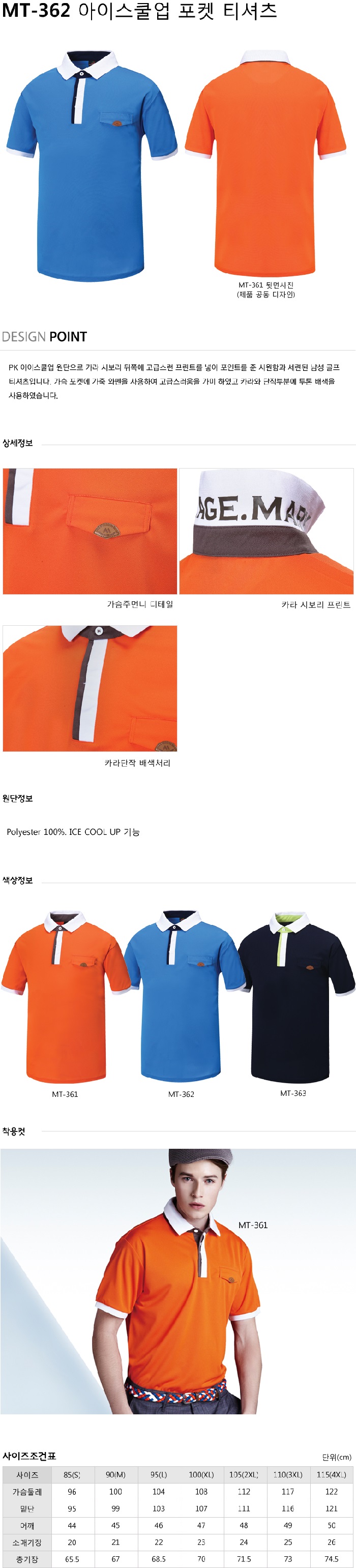 MT-361~363 아이스쿨업 포켓 티셔츠(아쿠아)