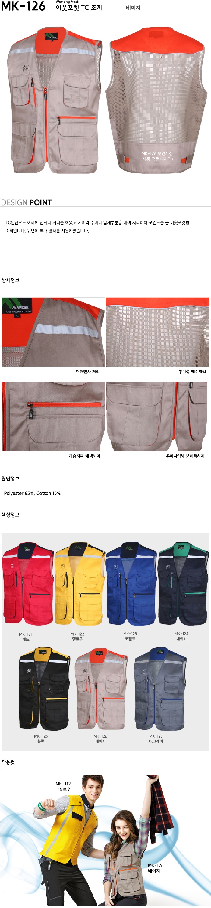 MK-121~127 / 아웃포켓 TC조끼