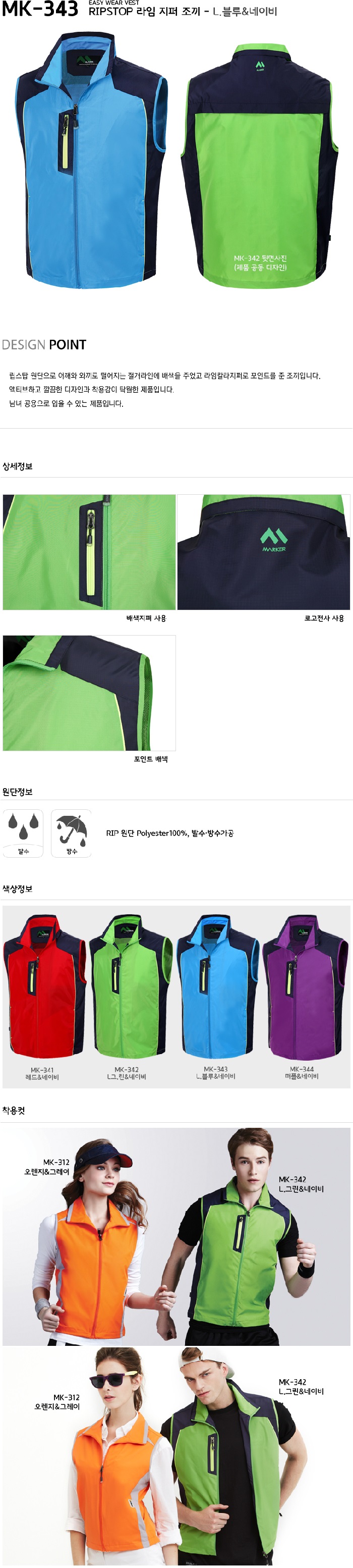 MK-341~344 / RIPSTOP 라임지퍼 조끼