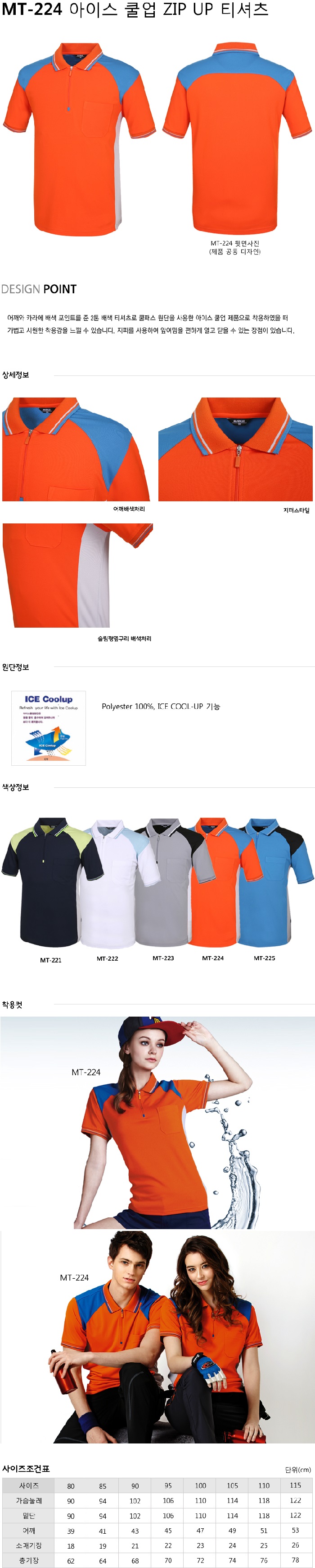 MT-221~225 아이스쿨업 ZIPUP 티셔츠(오렌지)