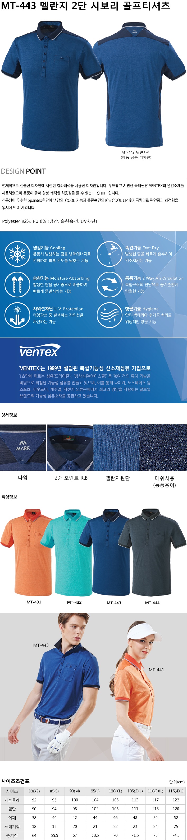 MT-441~444 멜란지 2단 시보리 골프티셔츠(네이비)