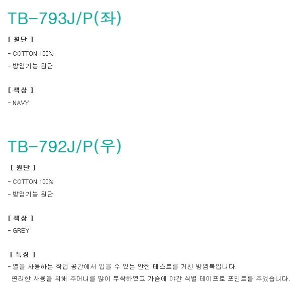 TB-793 J/P,792 J/P 방염복