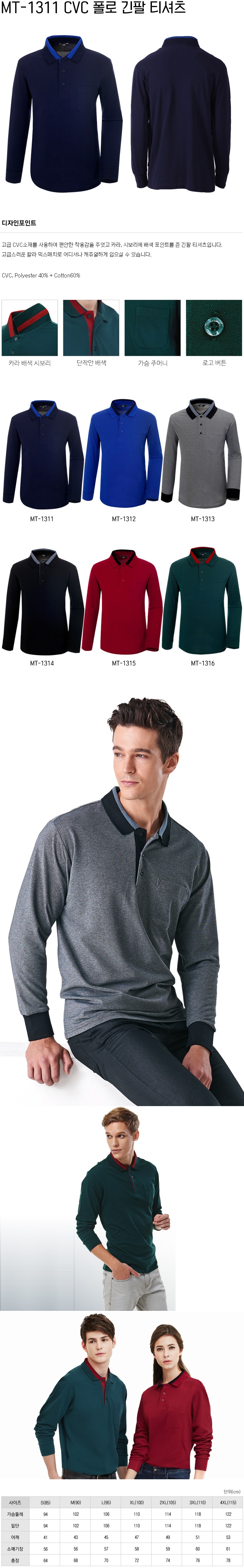 MT-1311 CVC 폴로 긴팔 티셔츠(네이비)