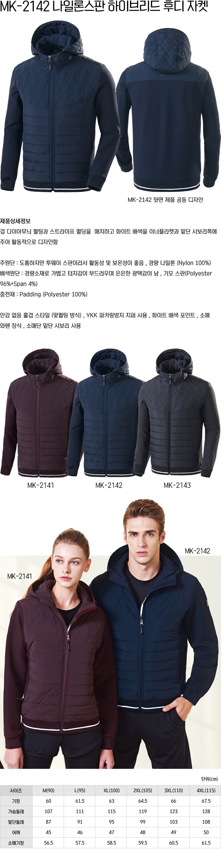 MK-2142/ 나일론스판 하이브리드 후디 자켓