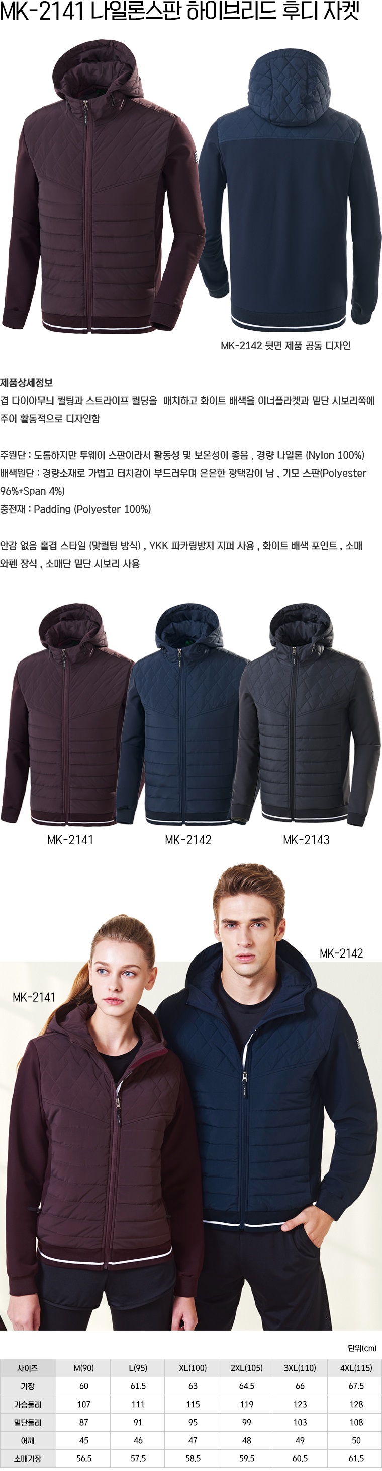 MK-2141/ 나일론스판 하이브리드 후디 자켓